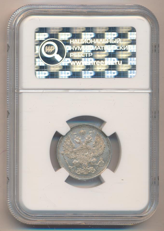Лицевая сторона — гербовый орел, оборотная —обозначение номинала (20 копеекъ), окруженное венком из лавровой и дубовой ветвей и дата.