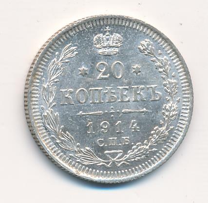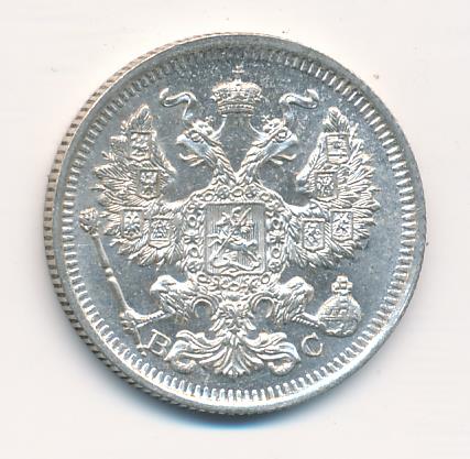 Лицевая сторона — гербовый орел, оборотная —обозначение номинала (20 копеекъ), окруженное венком из лавровой и дубовой ветвей и дата.