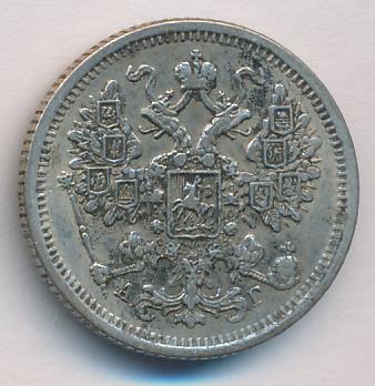Лицевая сторона — гербовый орел, оборотная —обозначение номинала (15 копеекъ), окруженное венком из лавровой и дубовой ветвей и дата.