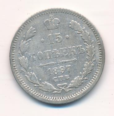 Лицевая сторона — гербовый орел, оборотная —обозначение номинала (15 копеекъ), окруженное венком из лавровой и дубовой ветвей и дата.