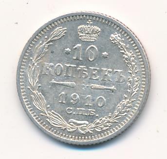 Лицевая сторона — гербовый орел, оборотная —обозначение номинала (10 копеекъ), окруженное венком из лавровой и дубовой ветвей и дата.