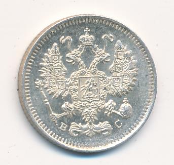 Лицевая сторона — гербовый орел, оборотная —обозначение номинала (10 копеекъ), окруженное венком из лавровой и дубовой ветвей и дата.