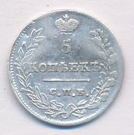 Лицевая сторона - двуглавый орел и дата, оборотная — обозначение номинала (5 копеекъ) в венке из лавровой и дубовой ветвей. Проба до 1813 года — 750, нормативный вес — 1,2 грамма; после 1813 года — проба 868, нормативный вес — 1,04 грамма.