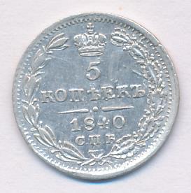 Лицевая сторона — новый гербовый орел с поднятыми крыльями, оборотная —обозначение номинала (5 копеекъ), окруженное венком из лавровой и дубовой ветвей и дата. Проба — 868, нормативный вес — 1,04 грамма.