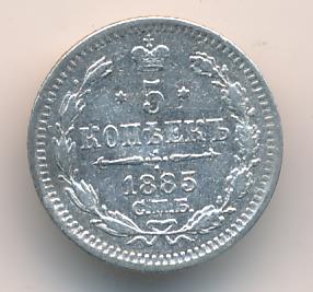 Лицевая сторона — гербовый орел, оборотная —обозначение номинала (5 копеекъ), окруженное венком из лавровой и дубовой ветвей и дата.