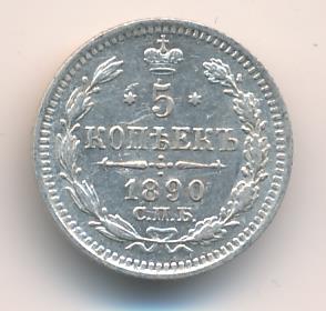 Лицевая сторона — гербовый орел, оборотная —обозначение номинала (5 копеекъ), окруженное венком из лавровой и дубовой ветвей и дата.