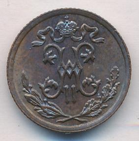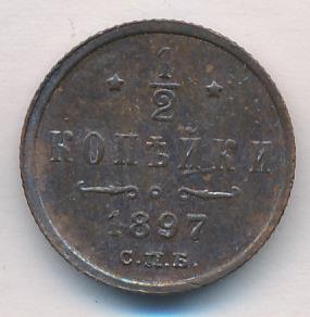 Лицевая сторона — вензель Александра II в венке из лавровой и дубовой ветвей; оборотная — обозначение номинала (1/2 копейки) и дата. Нормативный вес — 1,64 грамма, гурт рубчатый.