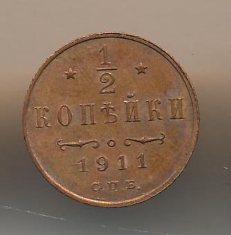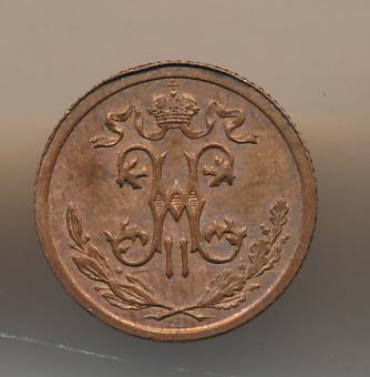 Лицевая сторона — вензель Александра II в венке из лавровой и дубовой ветвей; оборотная — обозначение номинала (1/2 копейки) и дата. Нормативный вес — 1,64 грамма, гурт рубчатый.