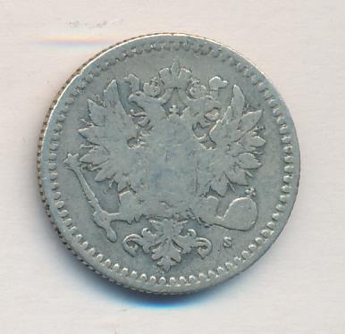 Лицевая сторона — российский двуглавый орел с гербом Великого княжества Финляндского на груди, оборотная — номинал и дата в венке из дубовых листьев. Проба — 750, нормативный вес — 2,55 грамма, гурт рубчатый.