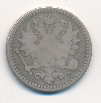 Лицевая сторона — российский двуглавый орел с гербом Великого княжества Финляндского на груди, оборотная — номинал и дата в венке из дубовых листьев. Проба — 750, нормативный вес — 2,55 грамма, гурт рубчатый.
