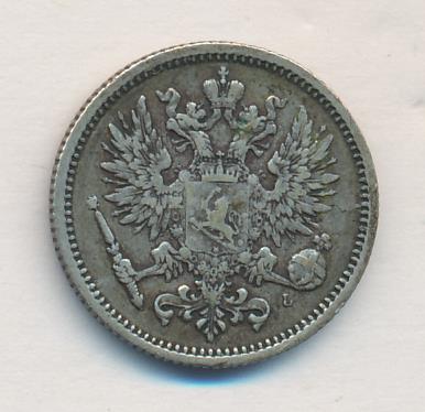 Лицевая сторона — российский двуглавый орел с гербом Великого княжества Финляндского на груди, оборотная — номинал и дата в венке из дубовых листьев. Проба — 750, нормативный вес — 2,55 грамма, гурт рубчатый.