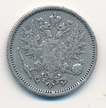 Лицевая сторона — российский двуглавый орел с гербом Великого княжества Финляндского на груди, оборотная — номинал и дата в венке из дубовых листьев. Проба — 750, нормативный вес — 2,55 грамма, гурт рубчатый.