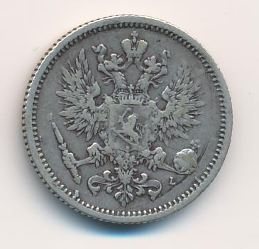 Лицевая сторона — российский двуглавый орел с гербом Великого княжества Финляндского на груди, оборотная — номинал и дата в венке из дубовых листьев. Проба — 750, нормативный вес — 2,55 грамма, гурт рубчатый.