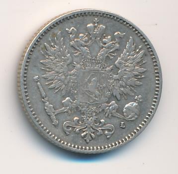 Лицевая сторона — российский двуглавый орел с гербом Великого княжества Финляндского на груди, оборотная — номинал и дата в венке из дубовых листьев. Проба — 750, нормативный вес — 2,55 грамма, гурт рубчатый.