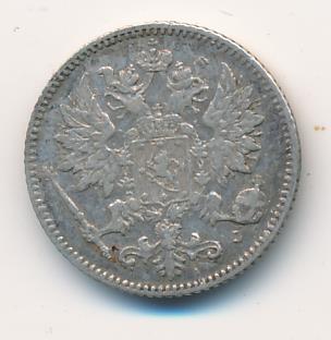 Лицевая сторона — российский двуглавый орел с гербом Великого княжества Финляндского на груди, оборотная — номинал и дата в венке из дубовых листьев. Проба — 750, нормативный вес — 1,27 грамма, гурт рубчатый.