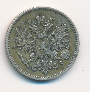 Лицевая сторона — российский двуглавый орел с гербом Великого княжества Финляндского на груди, оборотная — номинал и дата в венке из дубовых листьев. Проба — 750, нормативный вес — 1,27 грамма, гурт рубчатый.
