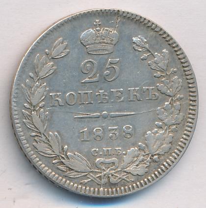 Лицевая сторона — новый гербовый орел с поднятыми крыльями и надпись «ЧИСТОГО СЕРЕБРА 1 ЗОЛОТНИКЪ 5 ДОЛЕЙ», оборотная —обозначение номинала (25 копеекъ), окруженное венком из лавровой и дубовой ветвей и дата.