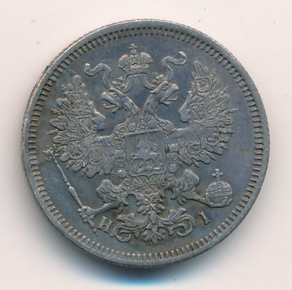 Лицевая сторона — гербовый орел, оборотная —обозначение номинала (20 копеекъ), окруженное венком из лавровой и дубовой ветвей и дата.