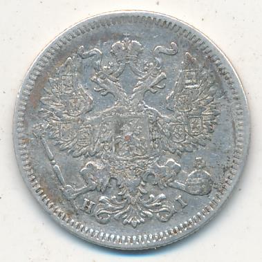 Лицевая сторона — гербовый орел, оборотная —обозначение номинала (20 копеекъ), окруженное венком из лавровой и дубовой ветвей и дата.