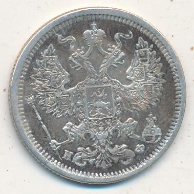 Лицевая сторона — гербовый орел, оборотная —обозначение номинала (20 копеекъ), окруженное венком из лавровой и дубовой ветвей и дата.
