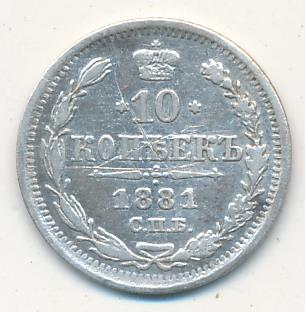 Лицевая сторона — гербовый орел, оборотная —обозначение номинала (10 копеекъ), окруженное венком из лавровой и дубовой ветвей и дата.