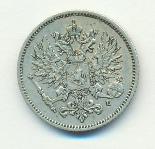 Лицевая сторона — российский двуглавый орел с гербом Великого княжества Финляндского на груди, оборотная — номинал и дата в венке из дубовых листьев. Проба — 750, нормативный вес — 1,27 грамма, гурт рубчатый.