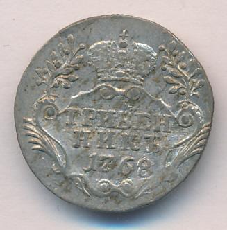 Екатерина II, отменив удвоение медной стопы, сохраняет снижение серебряной. Изменения в серебряном переделе вносятся указом от 30 марта 1764 года. Ряд серебряных номиналов пополняется четырьмя новыми той же 72/96 пробы, но несколько пониженной весовой нормы для покрытия издержек изготовления (полуполтинники и 20-копеечники делаются на 17 рублей 15,5 копеек, а 15-копеечники и гривенники — на 17 рублей 25,5 копеек из фунта).