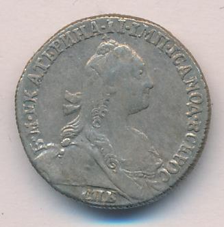 Лицевая сторона — портрет императрицы и надпись «Б М ЕКАТЕРИНА II IМП I САМОД ВСЕРОС», оборотная — обозначение номинала (гривенникъ) и дата. Проба — 750, нормативный вес — 2,37 грамма, гурт — шнур.