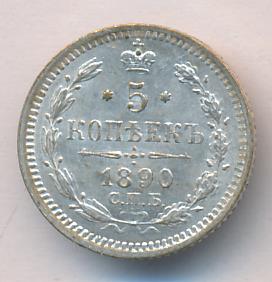 Лицевая сторона — гербовый орел, оборотная —обозначение номинала (5 копеекъ), окруженное венком из лавровой и дубовой ветвей и дата.