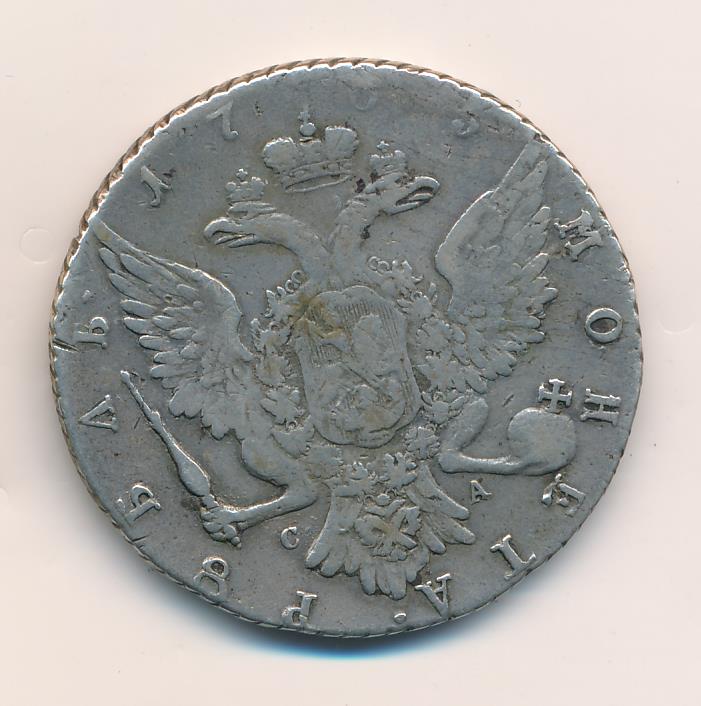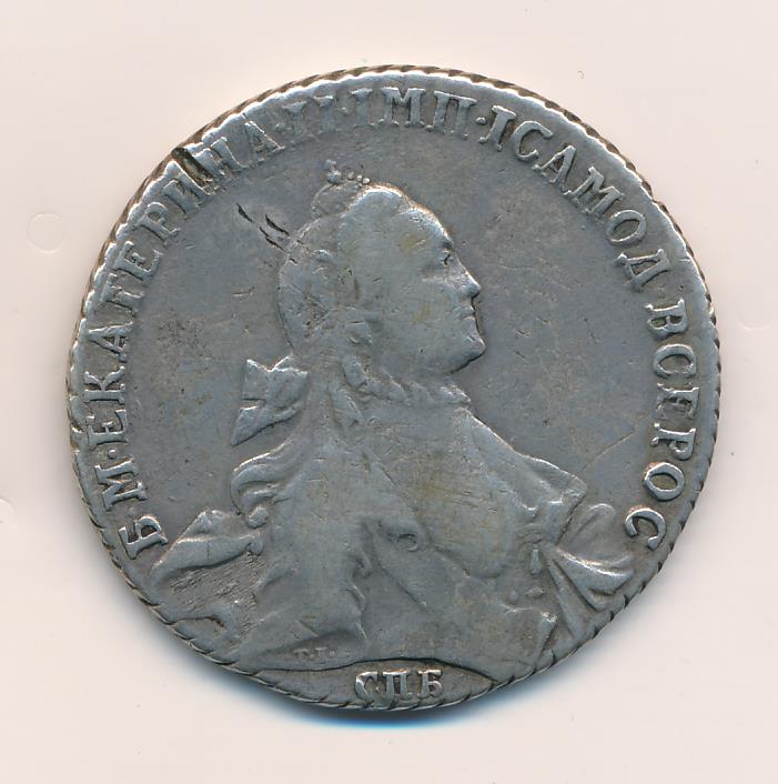 Лицевая сторона — портрет императрицы и надпись «Б М ЕКАТЕРИНА II IМП I САМОД ВСЕРОС», оборотная — двуглавый орел и надпись «МОНЕТА РУБЛЬ» и дата. Проба — 750, нормативный вес — 24 грамма, гурт — шнур.