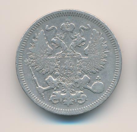 Лицевая сторона — гербовый орел, оборотная —обозначение номинала (20 копеекъ), окруженное венком из лавровой и дубовой ветвей и дата.