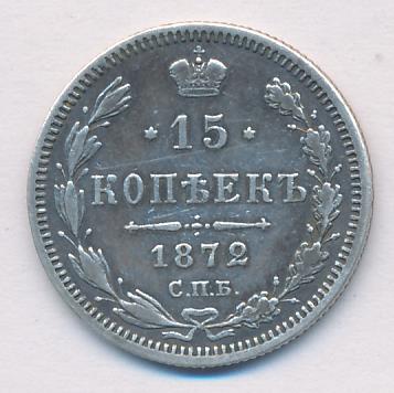 Лицевая сторона — гербовый орел, оборотная —обозначение номинала (15 копеекъ), окруженное венком из лавровой и дубовой ветвей и дата.