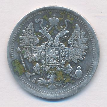 Лицевая сторона — гербовый орел, оборотная —обозначение номинала (15 копеекъ), окруженное венком из лавровой и дубовой ветвей и дата.