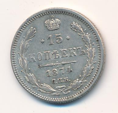 Лицевая сторона — гербовый орел, оборотная —обозначение номинала (15 копеекъ), окруженное венком из лавровой и дубовой ветвей и дата.