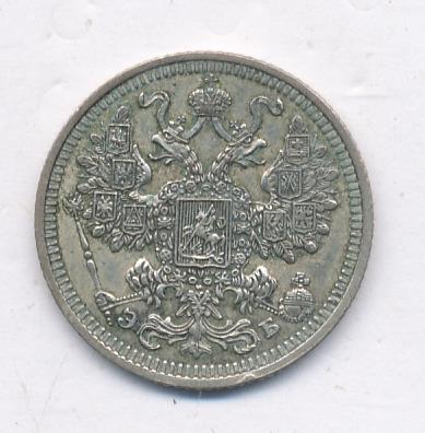 Лицевая сторона — гербовый орел, оборотная —обозначение номинала (15 копеекъ), окруженное венком из лавровой и дубовой ветвей и дата.