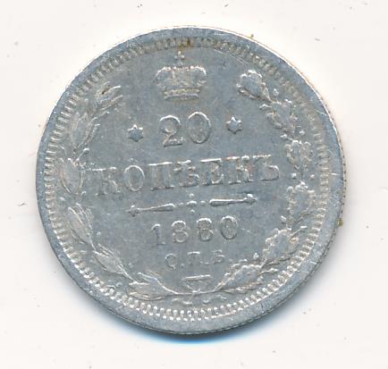 Лицевая сторона — гербовый орел, оборотная —обозначение номинала (20 копеекъ), окруженное венком из лавровой и дубовой ветвей и дата.