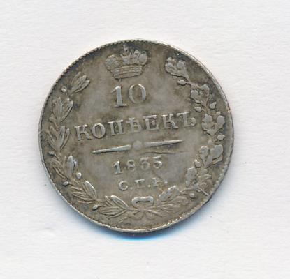 Лицевая сторона — новый гербовый орел с поднятыми крыльями, оборотная —обозначение номинала (10 копеекъ), окруженное венком из лавровой и дубовой ветвей и дата. Проба — 868, нормативный вес — 2,07 грамма.
