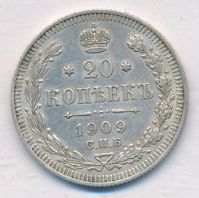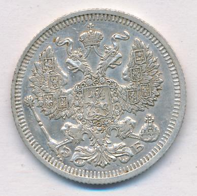 Лицевая сторона — гербовый орел, оборотная —обозначение номинала (20 копеекъ), окруженное венком из лавровой и дубовой ветвей и дата.