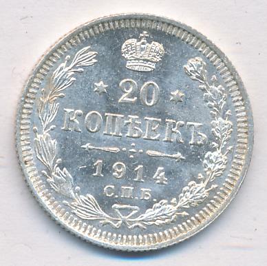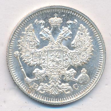 Лицевая сторона — гербовый орел, оборотная —обозначение номинала (20 копеекъ), окруженное венком из лавровой и дубовой ветвей и дата.