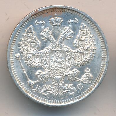 Лицевая сторона — гербовый орел, оборотная —обозначение номинала (20 копеекъ), окруженное венком из лавровой и дубовой ветвей и дата.