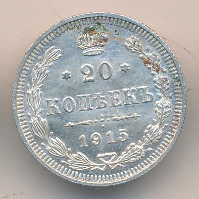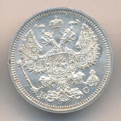 Лицевая сторона — гербовый орел, оборотная —обозначение номинала (20 копеекъ), окруженное венком из лавровой и дубовой ветвей и дата.
