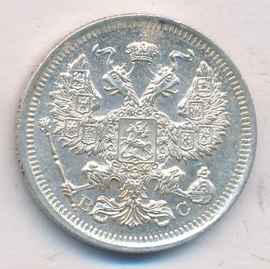 Лицевая сторона — гербовый орел, оборотная —обозначение номинала (20 копеекъ), окруженное венком из лавровой и дубовой ветвей и дата.