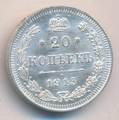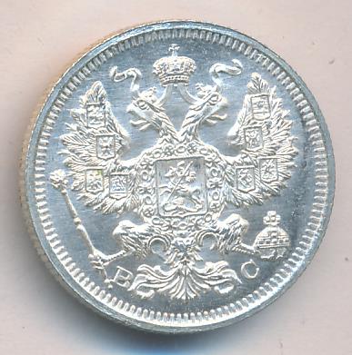 Лицевая сторона — гербовый орел, оборотная —обозначение номинала (20 копеекъ), окруженное венком из лавровой и дубовой ветвей и дата.