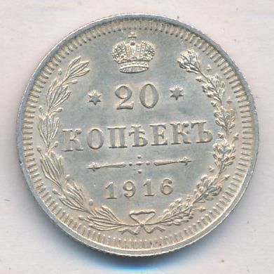 Лицевая сторона — гербовый орел, оборотная —обозначение номинала (20 копеекъ), окруженное венком из лавровой и дубовой ветвей и дата.