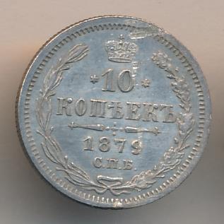 Лицевая сторона — гербовый орел, оборотная —обозначение номинала (10 копеекъ), окруженное венком из лавровой и дубовой ветвей и дата.