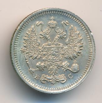 Лицевая сторона — гербовый орел, оборотная —обозначение номинала (10 копеекъ), окруженное венком из лавровой и дубовой ветвей и дата.