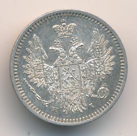 Лицевая сторона — новый гербовый орел с поднятыми крыльями, оборотная —обозначение номинала (5 копеекъ), окруженное венком из лавровой и дубовой ветвей и дата. Проба — 868, нормативный вес — 1,04 грамма.
