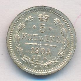 Лицевая сторона — гербовый орел, оборотная —обозначение номинала (5 копеекъ), окруженное венком из лавровой и дубовой ветвей и дата.
