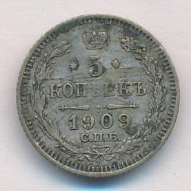 Лицевая сторона — гербовый орел, оборотная —обозначение номинала (5 копеекъ), окруженное венком из лавровой и дубовой ветвей и дата.