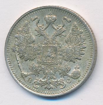 Лицевая сторона — гербовый орел, оборотная —обозначение номинала (15 копеекъ), окруженное венком из лавровой и дубовой ветвей и дата.